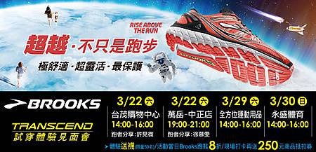 「Transcend超越系列」為BROOKS布魯斯頂級支撐型跑鞋,