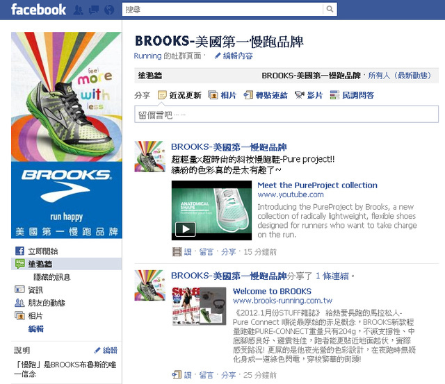即日起BROOKS在Facebook上正式經營粉絲專頁嚕~